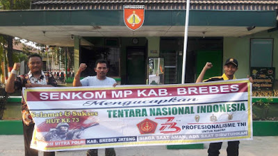 Bersama rekannya, Awaludin Purnomo (40) mereka mendatangi Koramil 03 Wanasari Kodim 0713 Brebes untuk memberikan selamat kepada TNI yang akan merayakan HUT yang Ke-73, 5 Oktober 2018 melalui ucapan dan tulisan. Sabtu (29/9/18).
